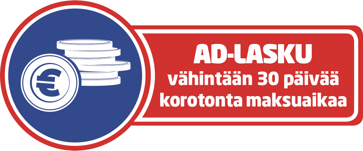 AD-Laskulla saat aina vähintään 30 vuorokautta korotonta maksuaikaa. Halutessasi voit maksaa myös erissä! Automatisoitu luotonhaku on helppoa ja vaivatonta, todennat vain henkilöllisyytesi ja annat viralliset yhteystietosi. Voit valita annetuista vaihtoehdoista sinulle parhaiten sopivan erien määrän tutustuttuasi maksusuunnitelmiin ja ehtoihin rauhassa kotona